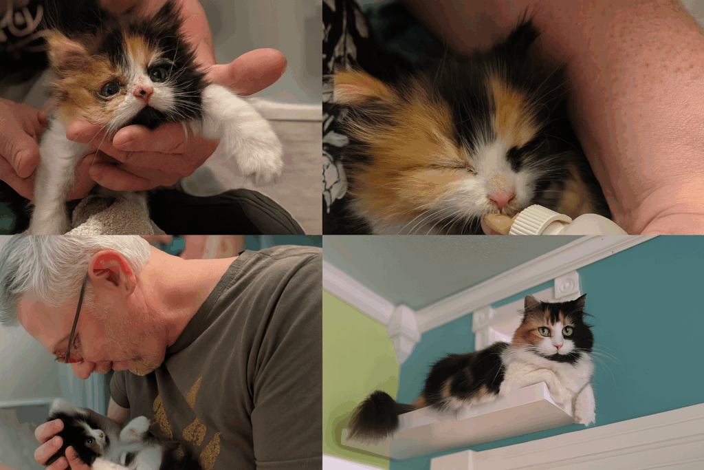 It was a warm summer night, and we were gathered around a bonfire with friends when Lisa heard a faint cry coming from the alley. What she found was Luna—tiny, filthy, and trembling under the glow of a full moon. Her mama was gone, maybe scared off by a predator, leaving Luna alone and hungry. We wrapped her in a towel, cleaned her up, and began bottle-feeding her through the night. With veterinary care and a whole lot of love, Luna blossomed into the radiant beauty you see here. When you Buy Us a Coffee, you’re not just fueling our rescue efforts—you’re helping terrified, malnourished kittens like Luna become cherished, healthy companions. Your support writes the next chapter in their story. Please, Buy Us a Coffee. It truly makes all the difference.