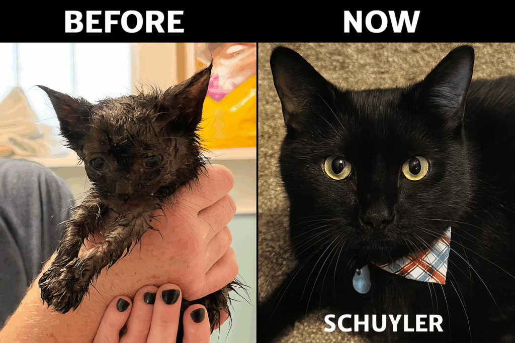 Meet Schuyler. When we found him, he was barely surviving—huddled in a filthy garage, soaked in mud and surrounded by chemicals, his tiny body trembling from hunger and fear. He was heartbreakingly fragile, covered in grime, and unsure if kindness even existed. But with love, veterinary care, and a safe place to heal, Schuyler began to bloom. Today, he’s the radiant, confident cat you see here – adopted and adored by a wonderful family and living the life every rescue deserves. Transformations like Schuyler’s are only possible because of the support we receive through Buy Me a Coffee. Every contribution helps us turn suffering into safety, and fear into forever love.